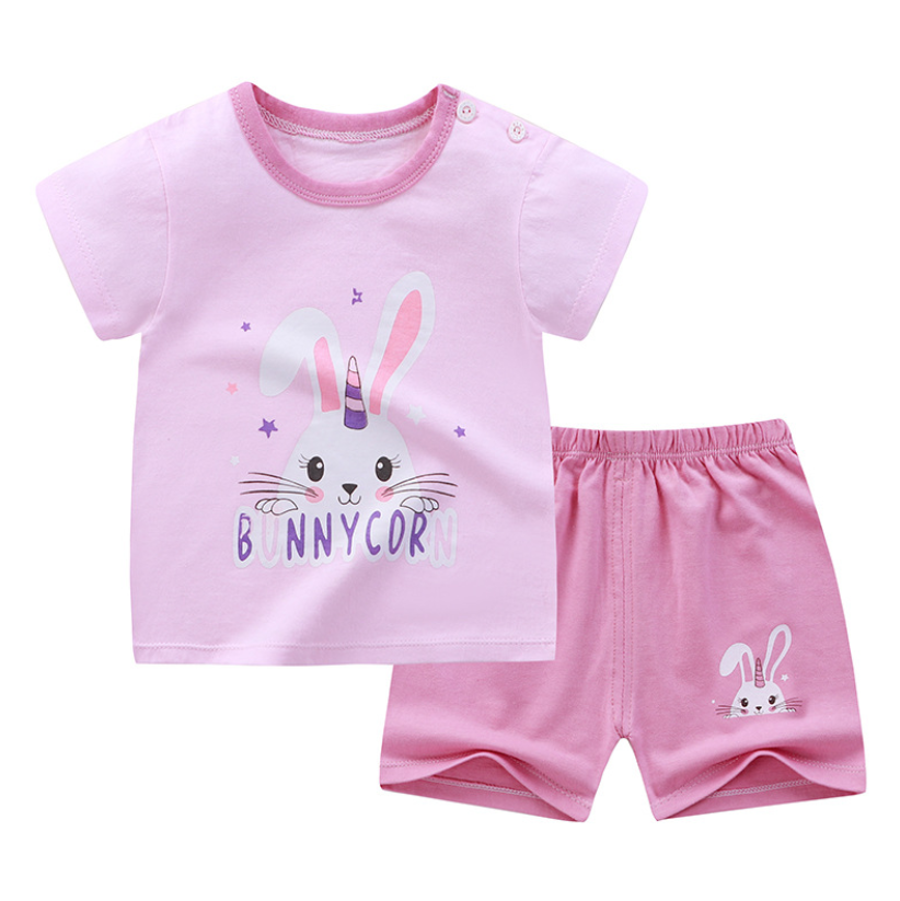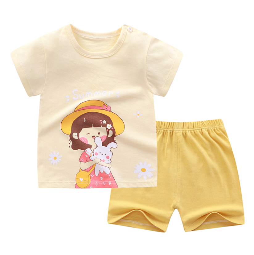 QINN Toddler Baby Kids Boys Girls 100% Cotton Clothing Sets Cute Print T-shirts Tops + Shorts Pants Trousers Home Wear Children Boy Girl Pajamas Clothes Set For 0-7 Years