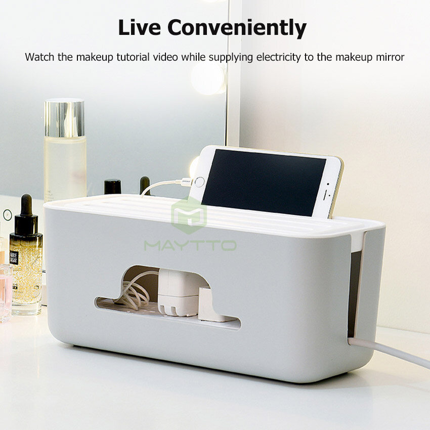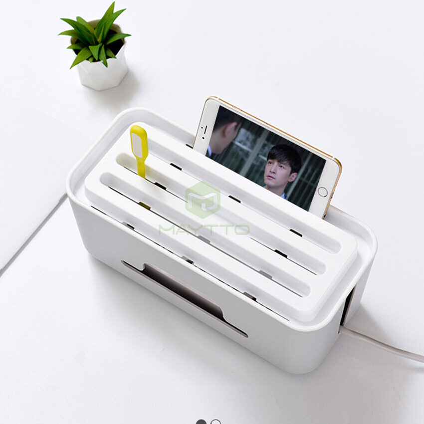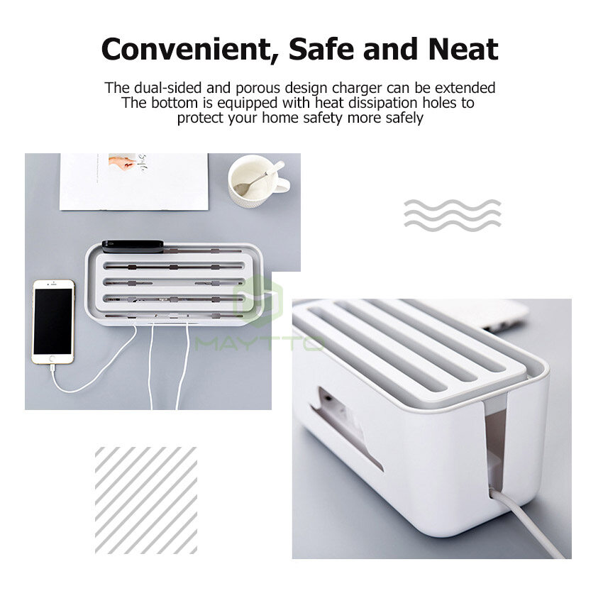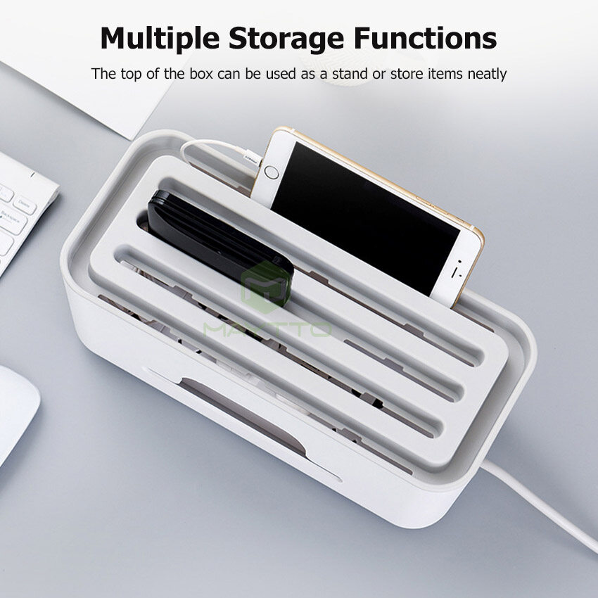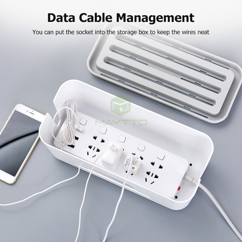MAYTTO Storage Box Power Cord ABS Cable Box Extension Cord Wire Organizer Desktop Phone Holder Mobile Charger Electrical Holder Storage Socket Plug Storage Gadget Power Socket Storage Bin USB Cable St