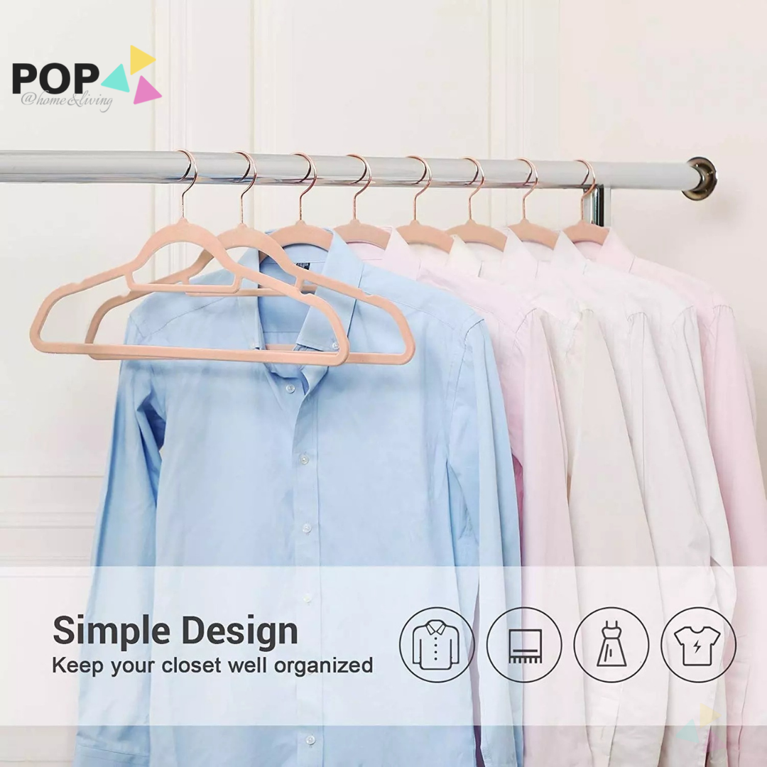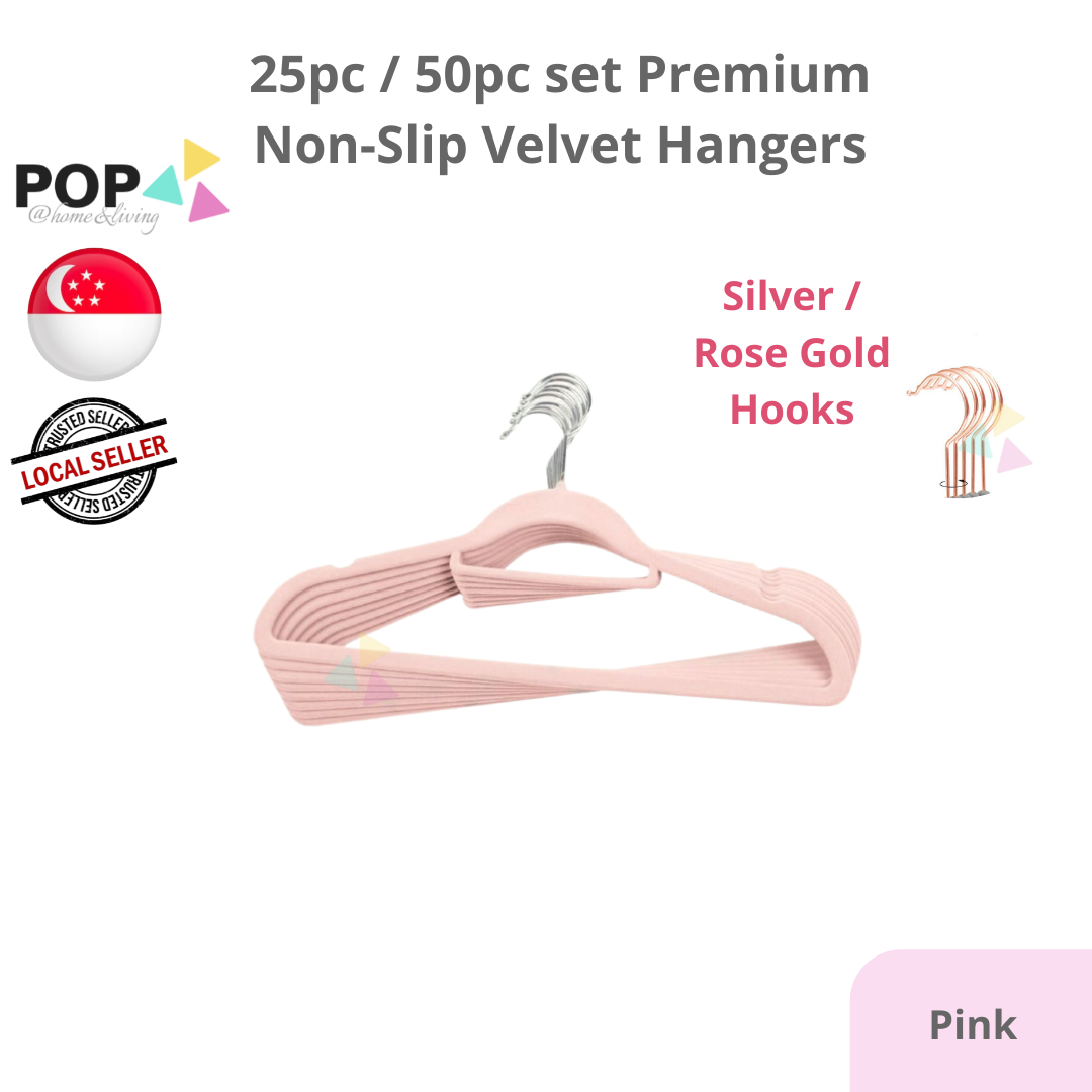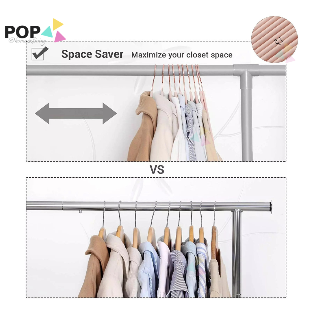 25 / 50 PC SET Rose Gold Silver Premium Non-Slip Velvet Clothes Hanger Slim Pink White Black Grey Anti-Slip Hangers Wardrobe Thin Closet Laundry Organiser Organizer CNY Spring Cleaning Raya Space Save