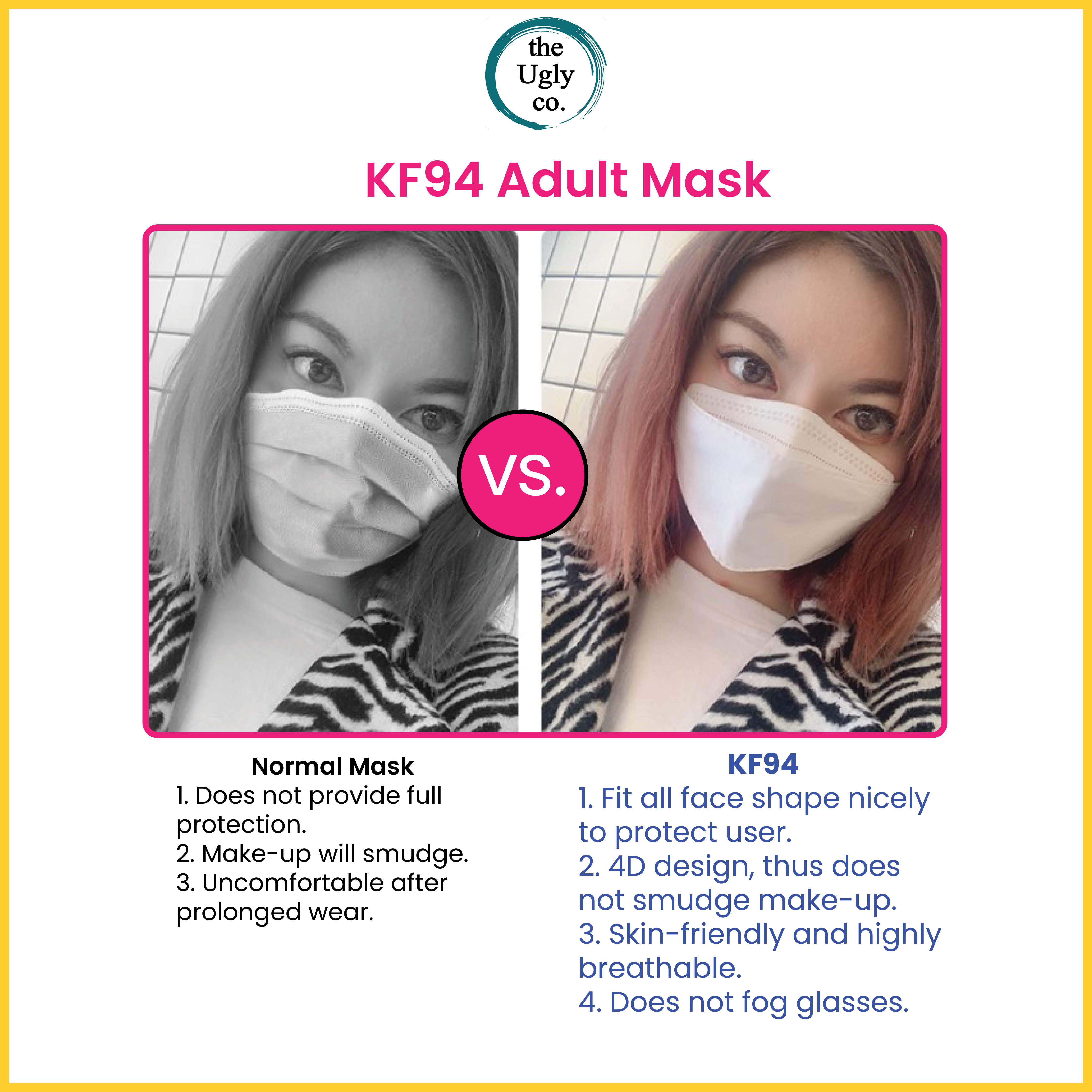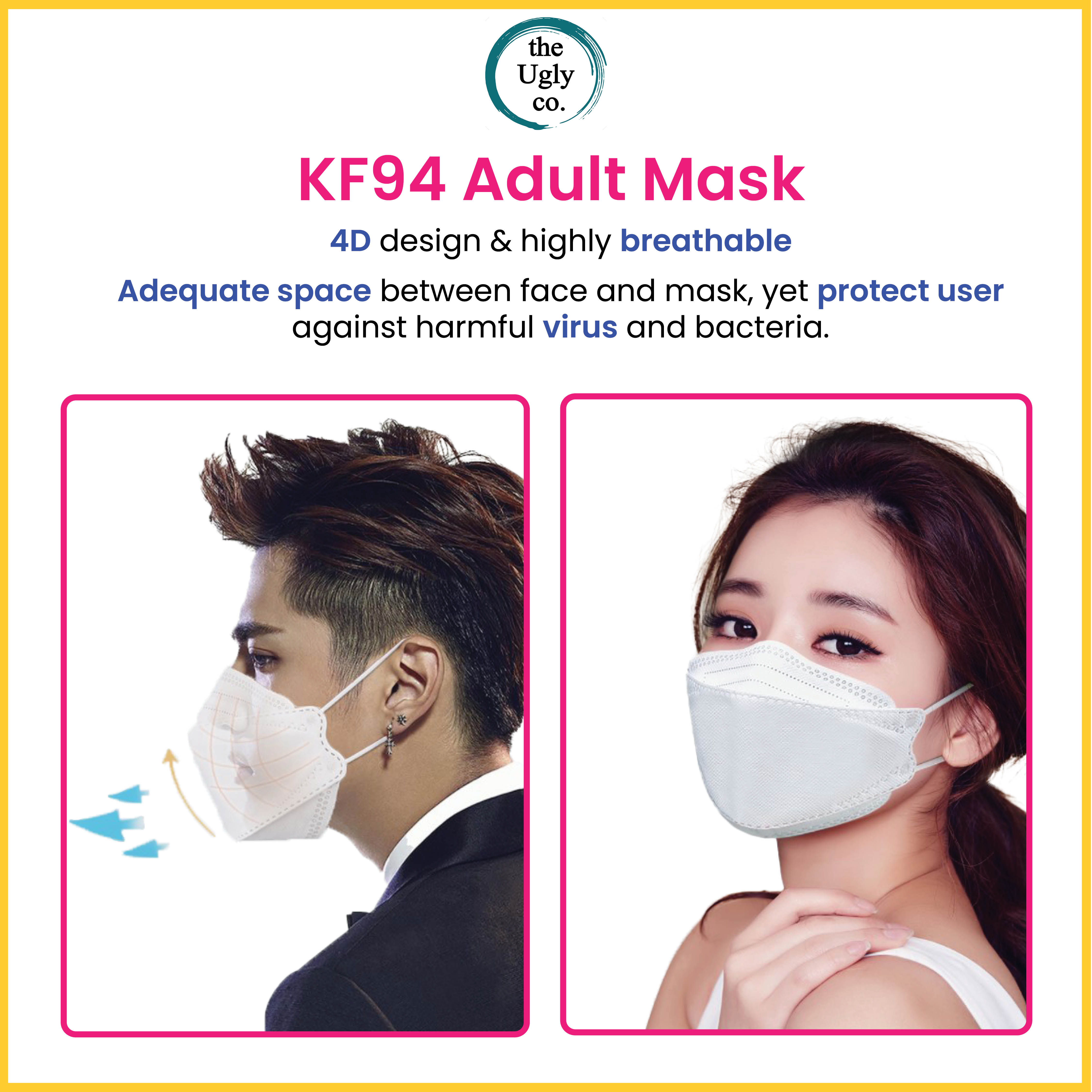 KF94 Mask Adult Individual Pack Singapore Seller, Korean Design Disposable 4 ply Face Protection, Black, White, Pink, antibacterial, no fog, individually packed, breathable, Korea sports non surgical