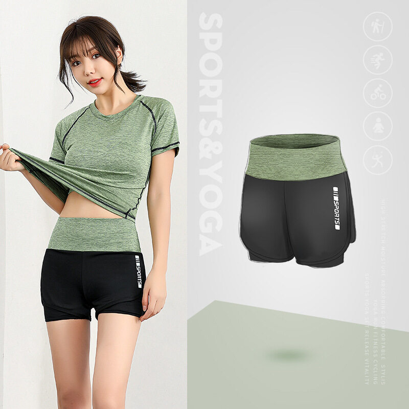 Women 2 In 1 Sports Shorts Summer Elastic Waist Running Tight Yoga Shorts for Woman Leisure Gym Fitness Short Pants Women Sportswear Workout Stretch Yoga Jogger Pants Seluar Sukan