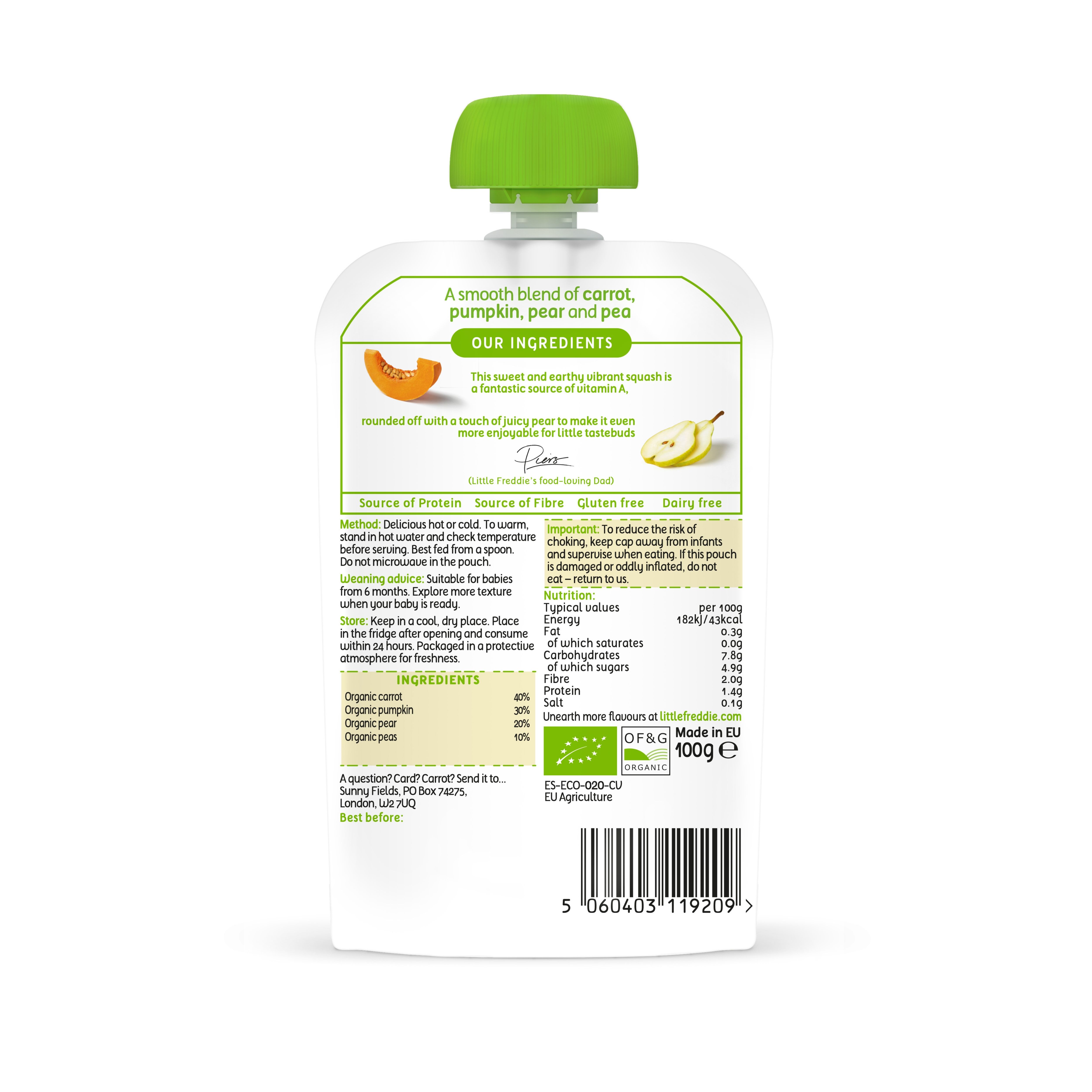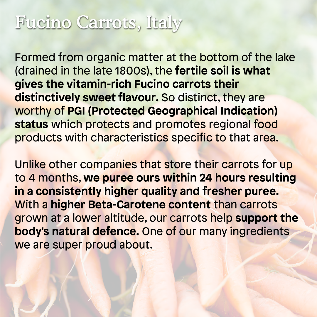This wholesome blend of carrot, pumpkin , pear & pear has no added water. This means the thicker texture of this recipe is perfect for palate progression, helping them progress to eating family meals sooner.