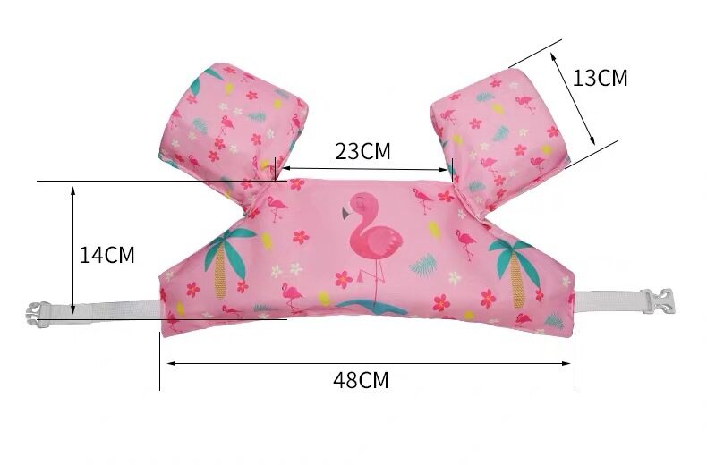 Features: 1.The surface area of the baby floats is larger after upgrade, buoyancy increased 30% accordingly. Floaties up to 50lbs, more fitting for children aged 2-6. 2. We adopted U-shaped design at collar part, ensure children are more comfortable and could move more freely in the water. 3.Toddler flotation vest strictly follows safety requirements for swimming aids intended to assist beginners with movement through the water while learning to swim. 4. The material inside toddler jacket is light high-density polyethylene foam with excellent performance in buoyancy. 3-button control buckle on back and double stitches on the belt, ensure kids enjoy a safe water world. 5.Featuring a colorful and kid-friendly design, help children play safely and have fun in the water. Specifications: