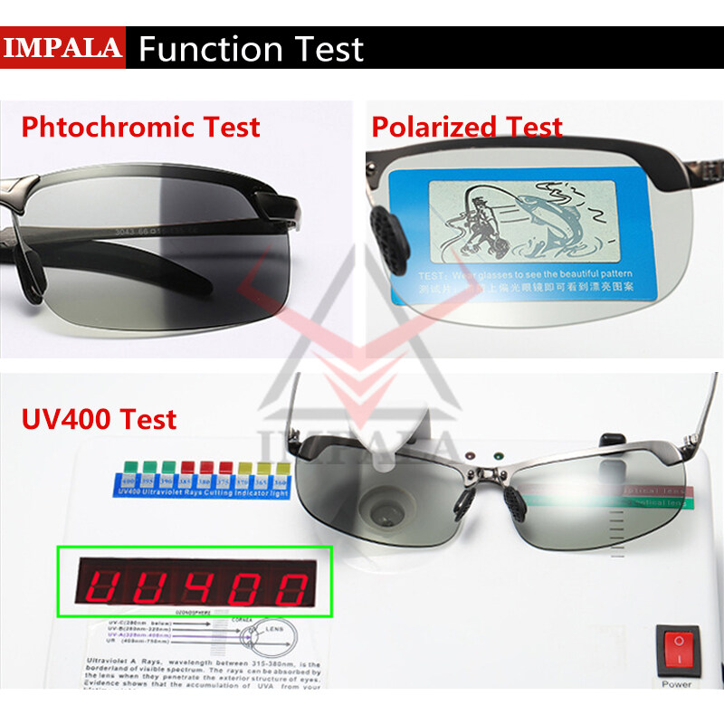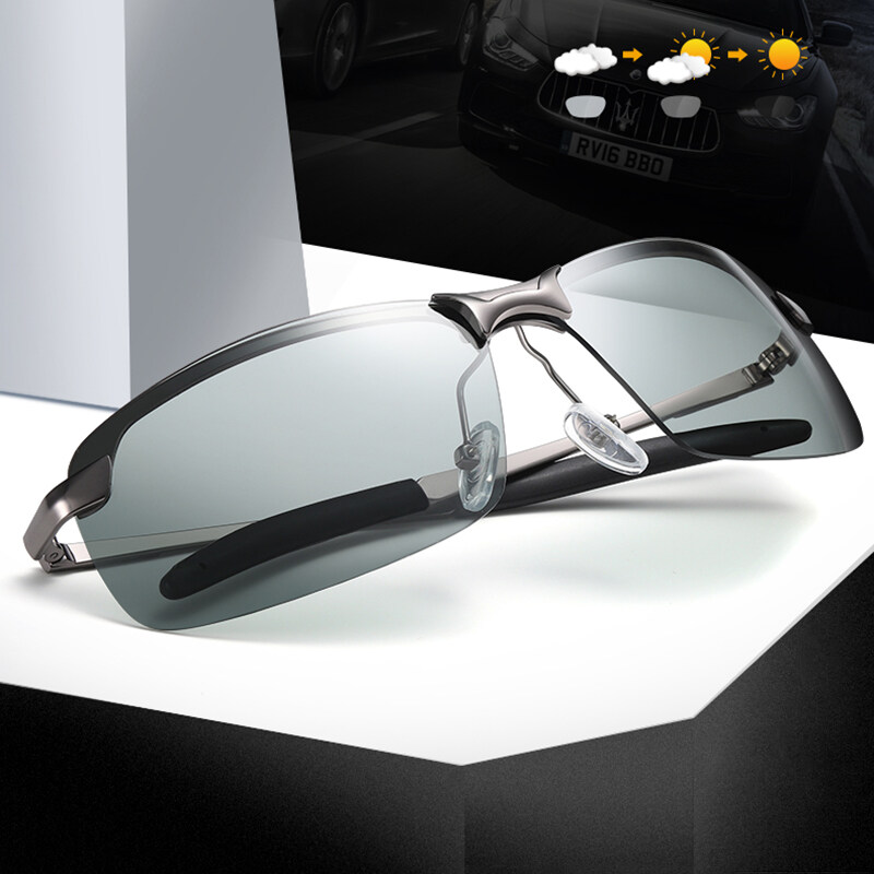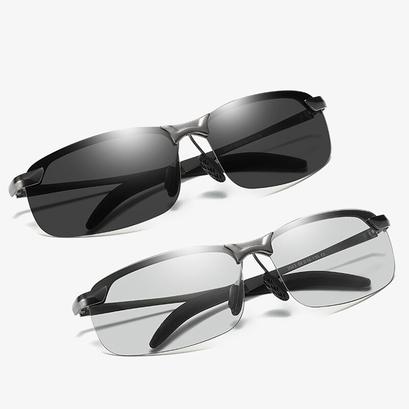 IMPALA PG036W Fashion Men Polarized Sunglasses Metal Frame Photochromic Lens Anti Glare UV Protective Eyeglasses Original Style Korean Sun Glasses UV400 HD Lens Change Color Itself