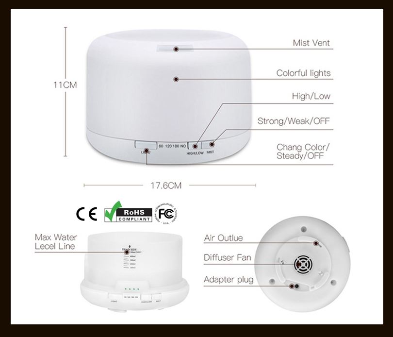 With its ultrasonic atomization that vaporise water and essential oils, you will be able to enjoy the coolness of the mist and aroma of the essential oils.