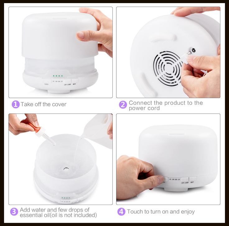 > Humidifies dry air and Diffuse essential oils