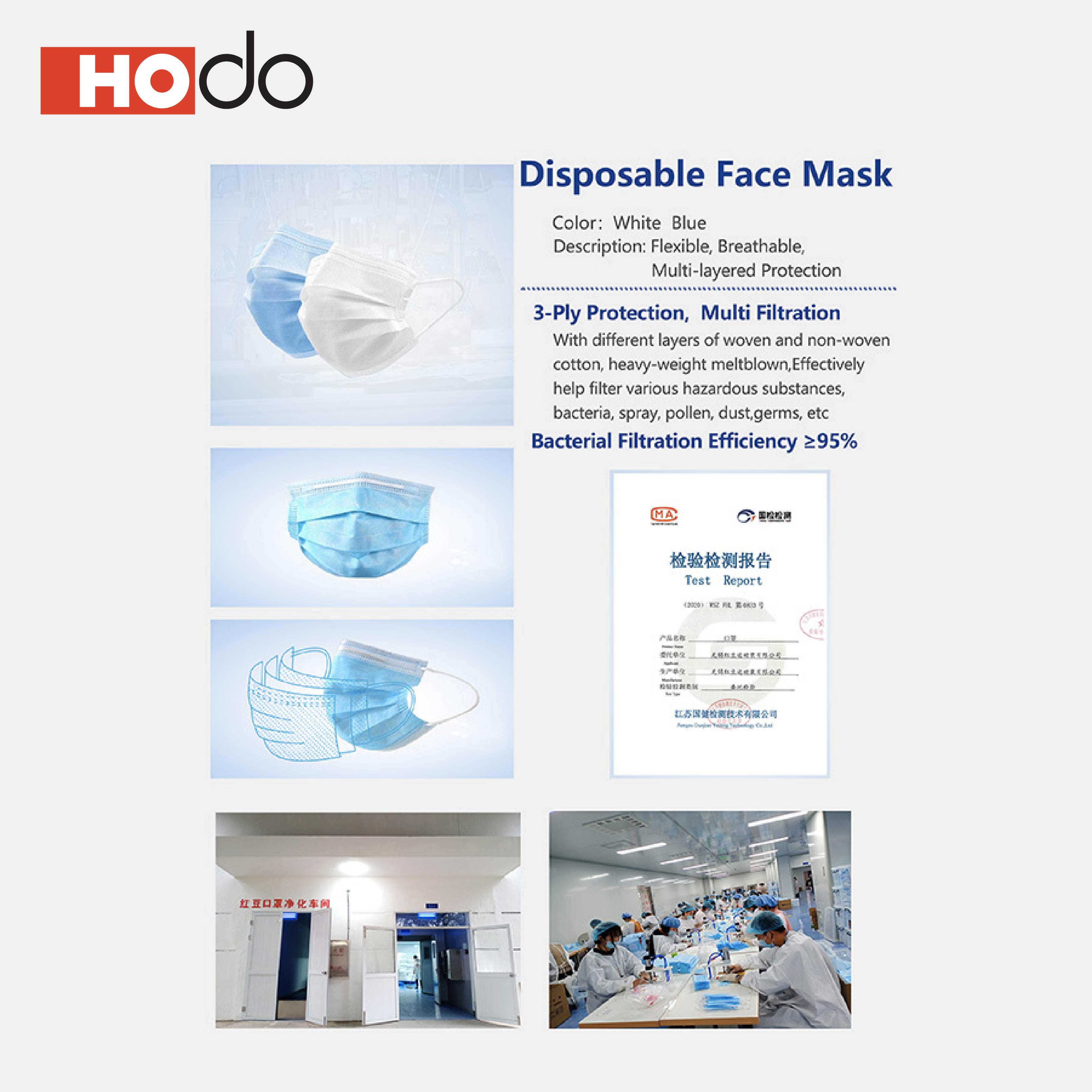 Hodo 50 Pcs 3 Ply Disposable Face Mask SG Ready Stock Non-Medical Mask Anti-fog Anti-virus Protective Cover Facemask for Adult