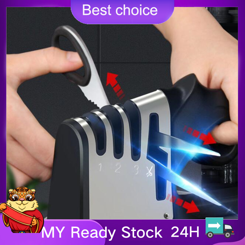 Suitable for straight knives and scissors; Designed with incredible 4-slot system; Non-slip base makes the sharpener steady; Ergonomic handle ensures comfortable and stable grip; Easy to use Specifications Color: black/green Material: ABS+silicone+tungsten steel+ceramic+diamond Size: 200*95*40mm Package list: 1*knife sharpener Descriptions: * Material: Hard blades, ABS, silicone, tungsten steel, diamond and ceramic, durable material. * 4-stage knife sharpener: With our incredible 4-slot system, including diamond sharpening rod for coarse, ceramic sharpening rod for fine sharpening and polish, tungsten sharpening rod for blunt blades and scissors sharpening rod. * Application: Designed for straight knives, such as, chef knife, steak knives, steel knives and scissors and more. * Non-slip base: Anti-skid silicone base makes the sharpener steady and easy to hold. * Handle: Ergonomic handle ensures comfortable and stable grip when sharpening. * Easy to use: Simply position the dull blade on the sharpening slot and make razor-sharpness in just seconds. * Warm tips: 1. Not suitable for serrated blades and ceramic knives. 2. Please keep the sharpening tool clean and dry. * Notes: 1. Please allowed 1-3mm differences due to manual measurement, thank you! 2. Due to the difference between different monitors, please understand that the picture may not reflect the actual color of the item. Packing list Package list: 1*knife sharpener