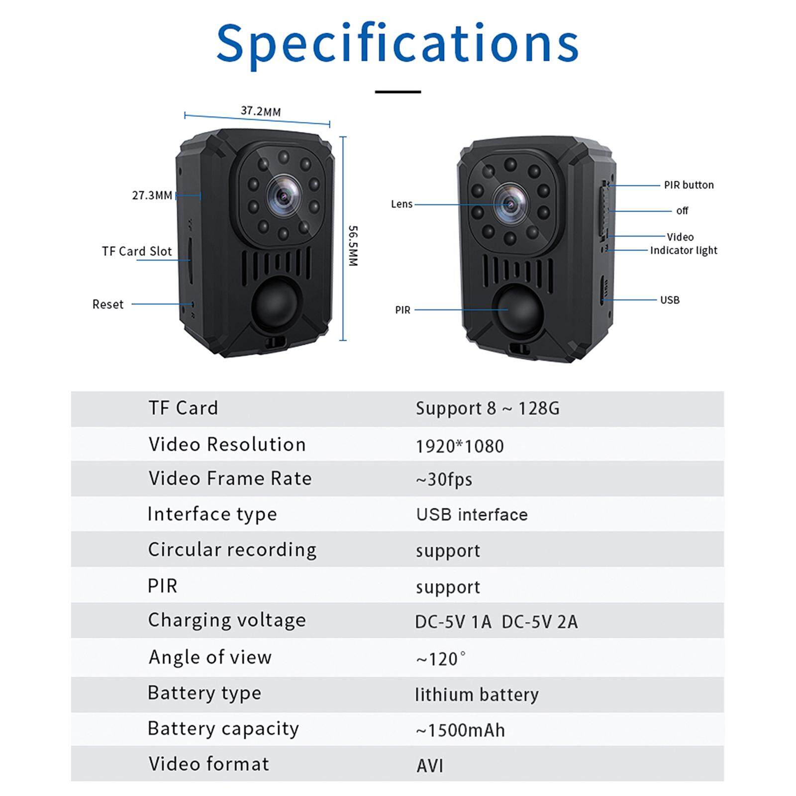 - HD 1080P 30fps and the 120° wide-angle lens, this mini body camera can capture the details clearly and a larger sight during recording.