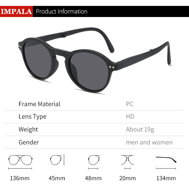 IMPALA QT2010Y Foldable Sunglasses with Luxury Round Case Anti UV Anti Glare Sunglasses for Women UV400 Protection Travel Sunglasses HD Lenses Exquisite Packaging