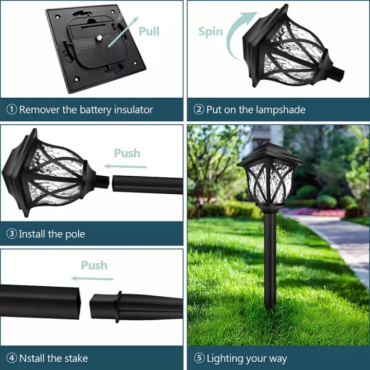 Meyou 4PCS Led Solar Garden Light Outdoor Waterproof Automatic Sensor Lawn Lights Retro Solar-Powered Rechargeable Fence Lamp for House Yard Patio Pathway Park Landscape Lighting Decorative Warm White