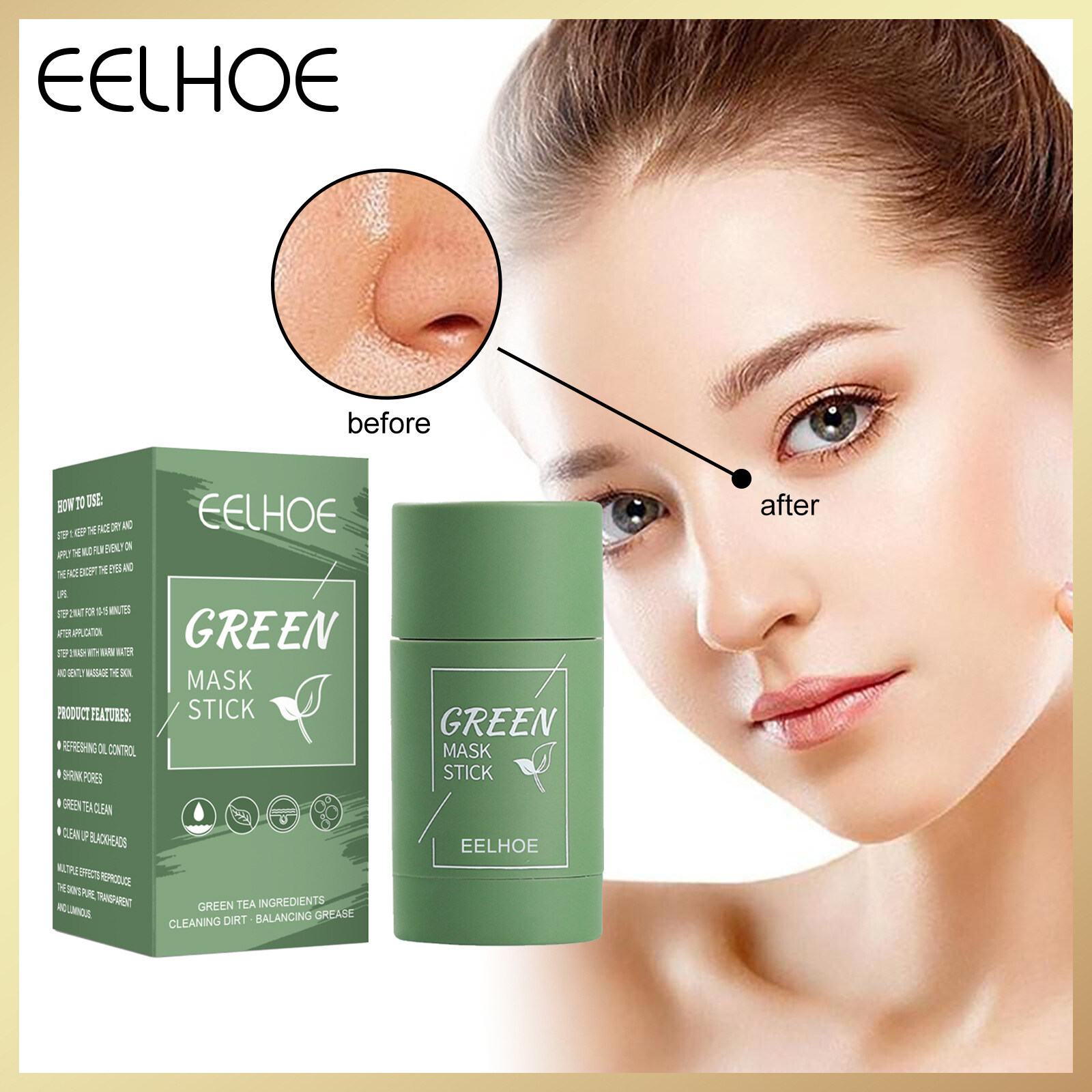Eelhoe Green Tea Solid Mask Stick Oil Control Deep Cleansing Peeling Mask Clean Up Reduce Blackheads Whitening Smoothing Anti Acne Treatment Reduce Shrink Pores Face Mask Beauty Face Care Mask Green M