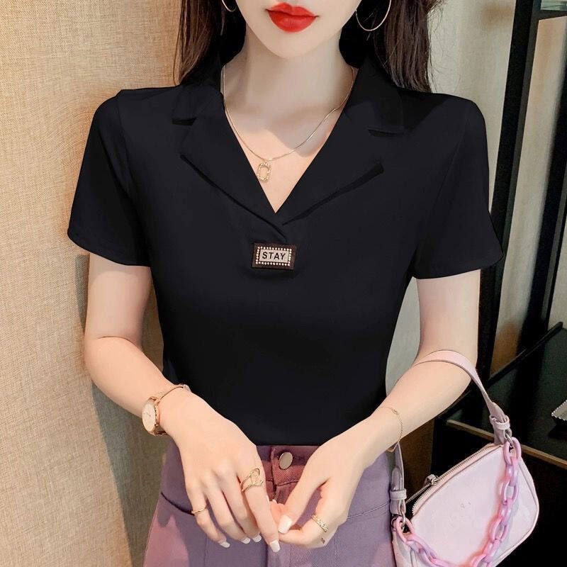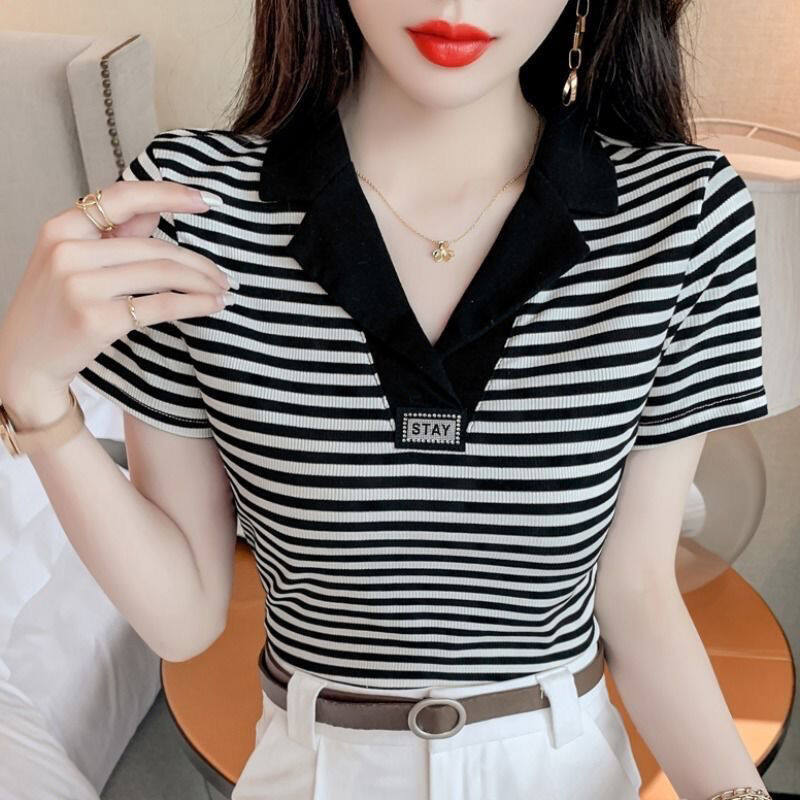 Women’s Short Sleeve Polo Shirt Lapel Temperament Tops for Women Summer New Age-reducing Casual Polo Shirt