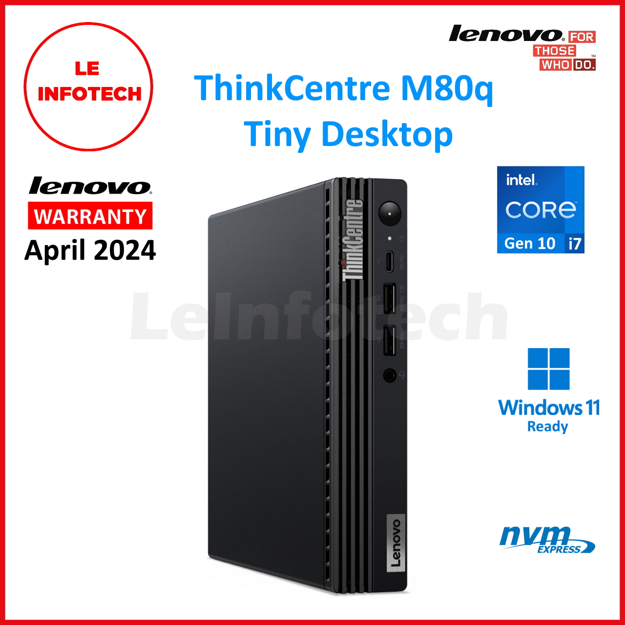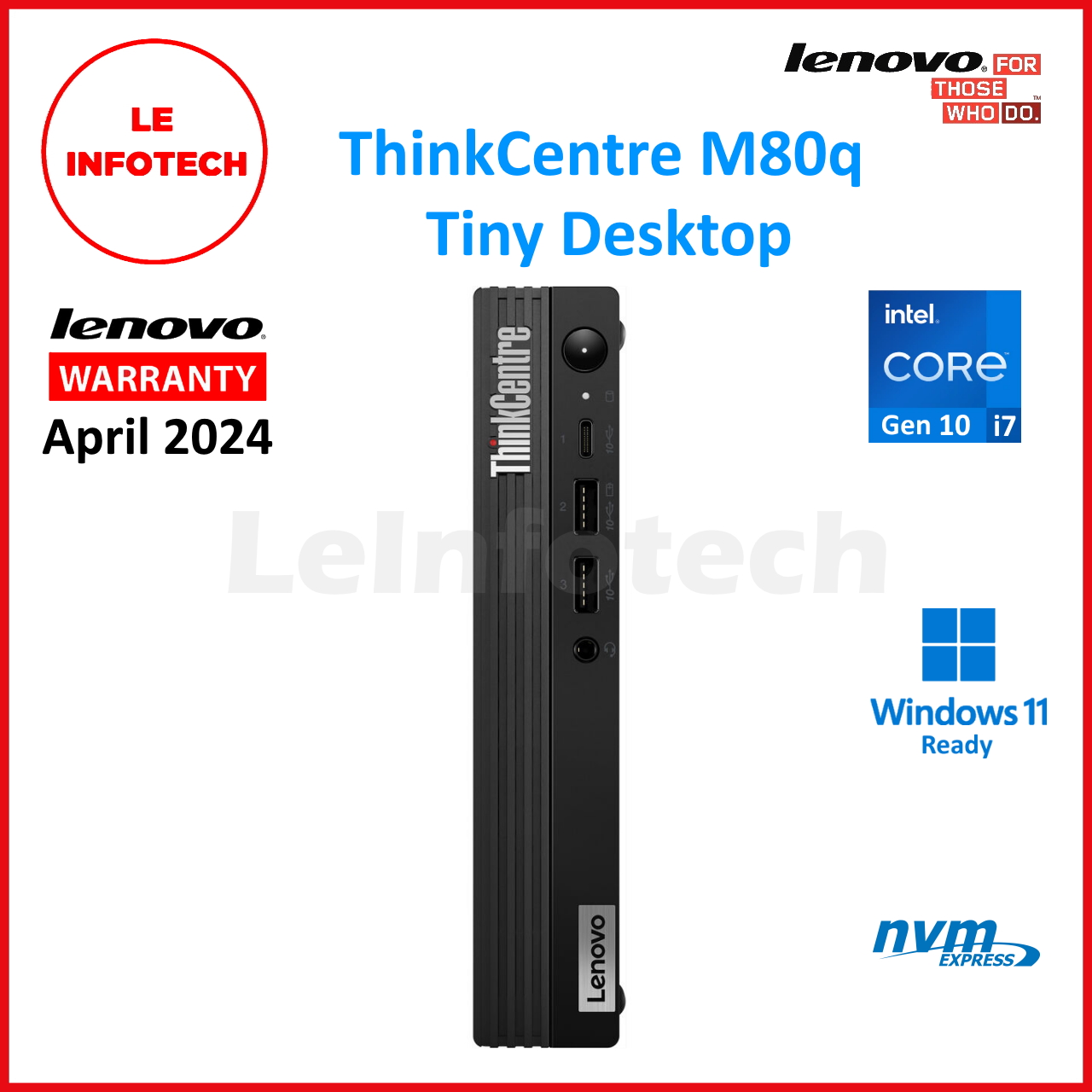 LENOVO ThinkCentre M80q Tiny Desktop 8-Core Intel i7-10700t 32GB 512GB SSD Win11 HDMI USB-C WiFi BT Warranty - Leinfotech
