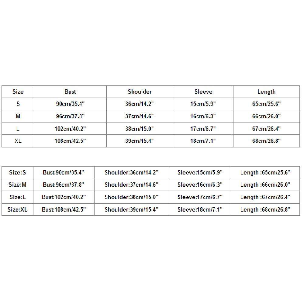 Size:S US:4 UK:8 EU:34 Bust:90cm/35.4" Shoulder:36cm/14.2" Sleeve:15cm/5.9" Length :65cm/25.6"