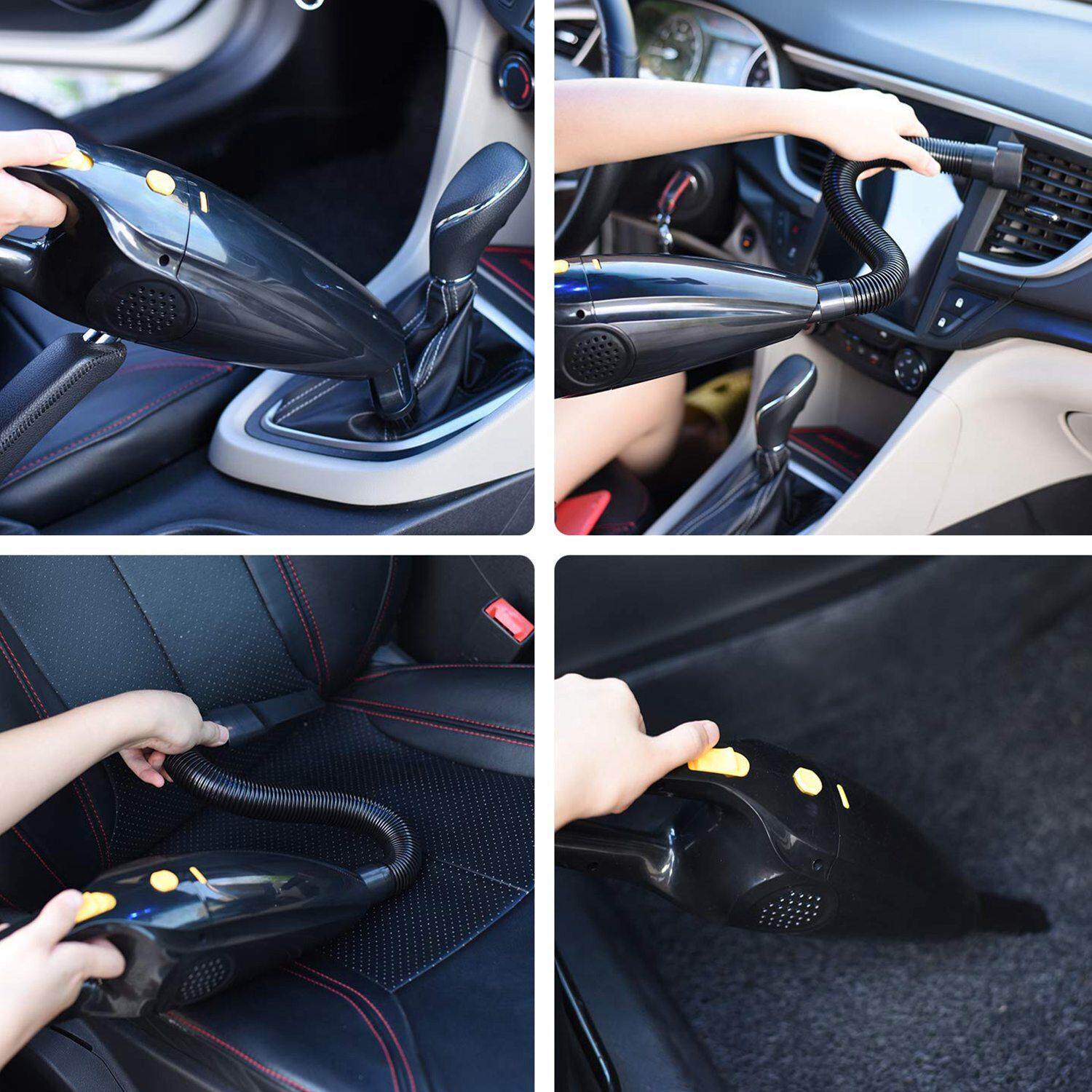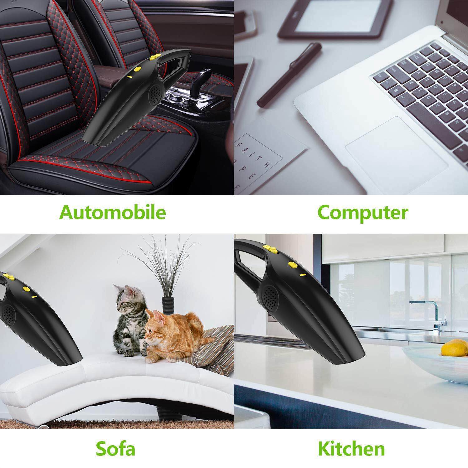 Portable Cordless & Lightweight - Wireless Vacuum Cleaner. Our cordless design makes it no space limited, you can clean your car or home for quick cleanups everywhere. It's rechargeable, avoiding the hassle of a cord, you don't need to find an outlet to make it work, more convenient and save your time. It's only 1.65 lbs POWERFUL CYCLONIC SUCTION- With 12V Lithium Battery, 120w motor and radial cyclone, hand-held vacuum provides a stable 4500PA strong cyclonic suction. Approximately 80db low noise. Supporting Dry and Wet use. Good for daily quick pick ups. A smart choice for both car cleaning and home cleaning LONGER RUNNING TIME -rechargeable vacuum cleaner can perform up to 20mins with its higher capacity and charge tech(5-6h). It means that you can clean about 1600 sq.ft room on a single charge DURABLE FILTER - (Offer an extra stainless filter as a bonus)Removable and washable HEPA filter, which enhances the powerful suction. Great perfect for thorough cleaning which to meet a gamut of cleaning needs. With these attachments kits can help you to clean hard-to-reach places with no trouble Type of use: wet and dry Battery Type: 2200mAh Li-ion Battery Input Voltage: DC 12V Power: 120W Vacuum Degree: 4500pa Decibel: less than or equal to 80dB 500 ml suction capacity Working time after fully charging: 20-25 minutes Charging time: approximately 6 hours Choose the lengthened nozzle to pick up liquid. However, pls note that do not pick up too much liquid, because the liquid will go into the motor and will cause short circuit colour:black Material:ABS size:38*11*9cm Package Contents: 1 x Cordless Handheld Vacuum 1 x USB Charging cable 5 x Accessories of Suction 1 x User Manual