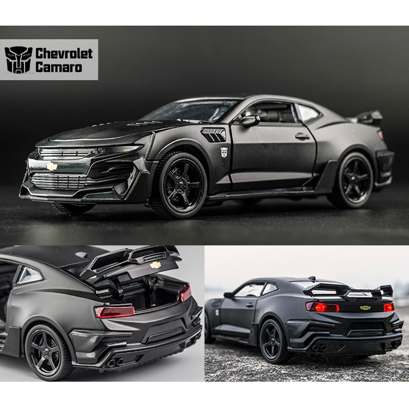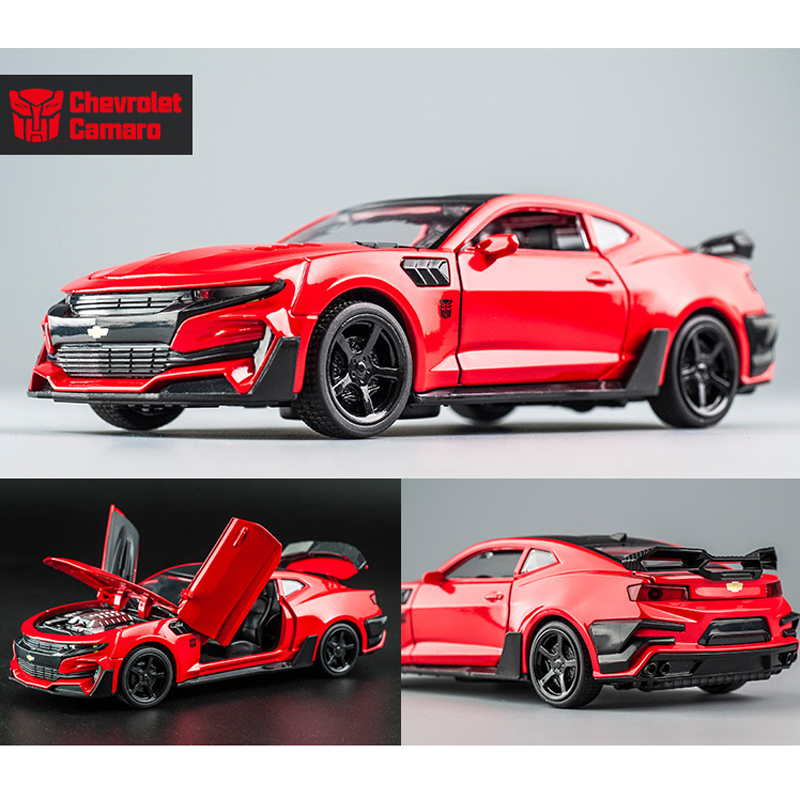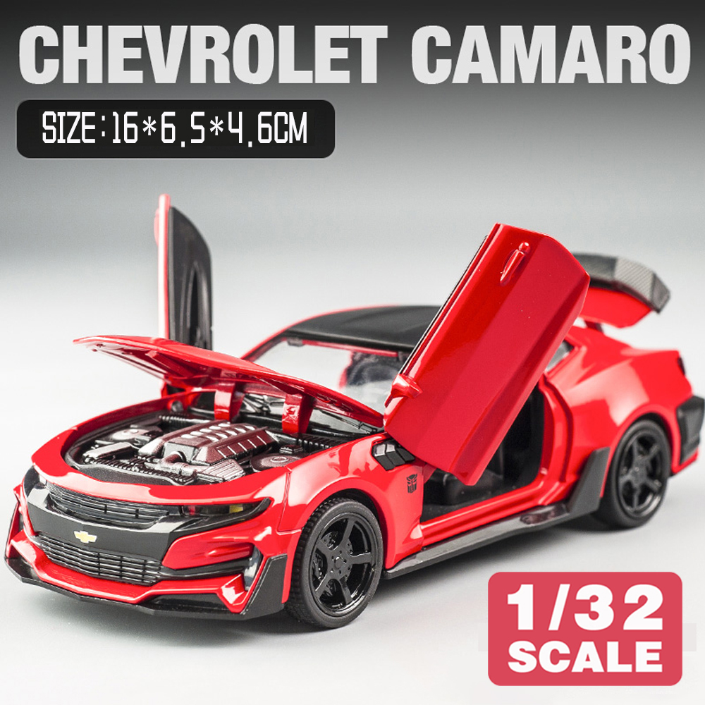 Name: Bumblebee CamaroColor: red, black, yellow, blueMaterial: Alloy PlasticProportion: 1:32Control method: pull backFeatures: Lights and music, The door can be openedProduct size: 16 * 6.5 * 4.6cmApplicable age: ≥3 years oldPackaging: Color box / no color box