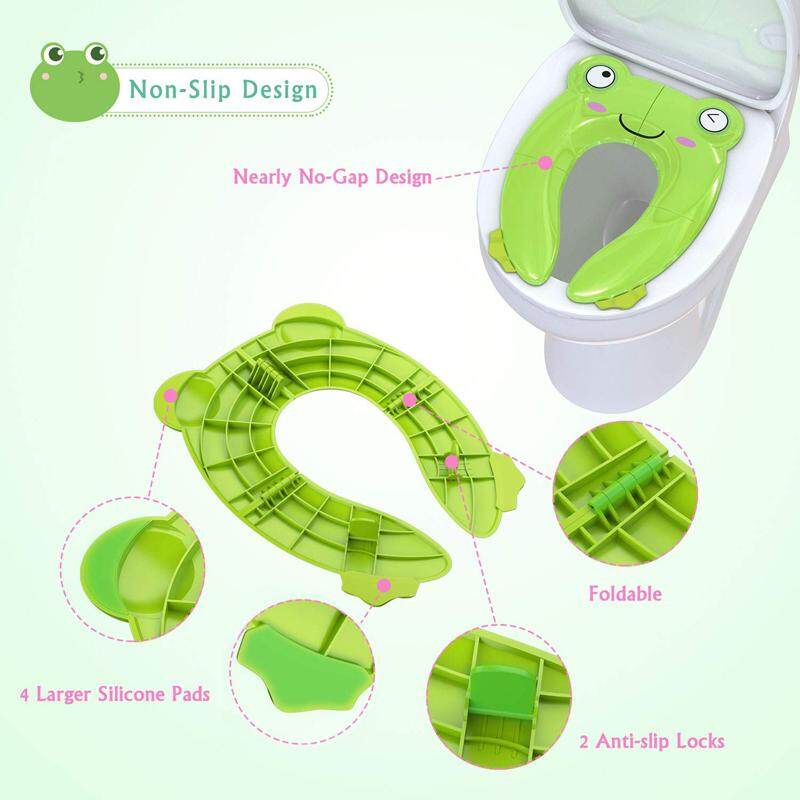 (Green)Cute Portable Potty Seat for Toddler Travel - Foldable Non-Slip Potty Training Toilet Seat Cover for Boys | Girls | Baby | Kids with pouch