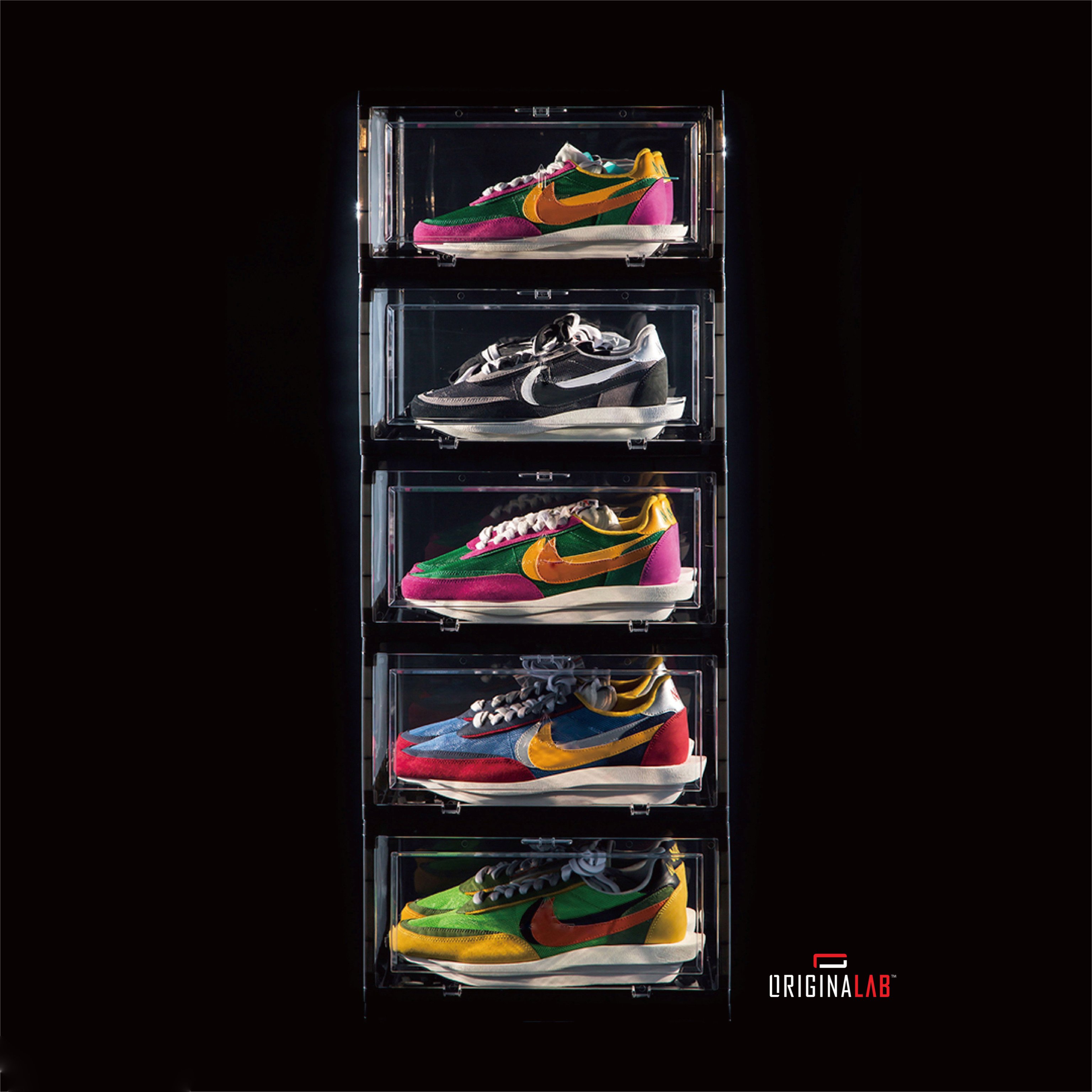 ORIGINALAB Premium Shoe Box is subjected to stringent QC tests to ensure its quality and durability. High Density PP Polystyrene is used to make this product. You can stack up to 20 boxes vertically due to the strong structural integration. Each box can support up to 60KG of weight.